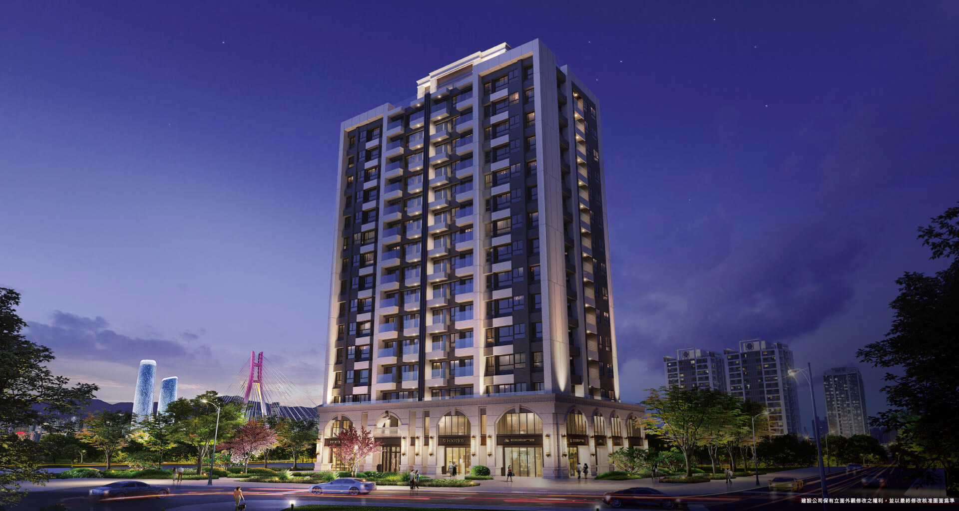 甲山林發揚帝寶精神,為住宅品味注入美學靈魂。崗石藝術精工,結合現代框架語彙。